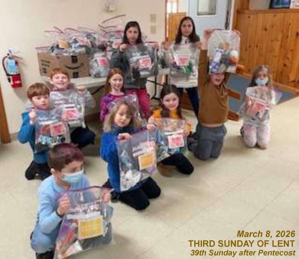 As a church family, our Faith Formation teachers and students are building a stronger, more compassionate community by practicing the Corporal Works of Mercy. We extend heartfelt thanks to our St. Joseph’s Parish family and to our visitors who donated hats, gloves, socks, essential toiletries, and healthy snacks, and to the Parish Outreach Committee who provided funds to purchase travel hot/cold mugs to include in the Blessing Bags. Last Sunday we assembled 64 Blessing Bags, which exceeded our goal of 50 bags. This act of almsgiving and charity was accomplished only by your generosity!